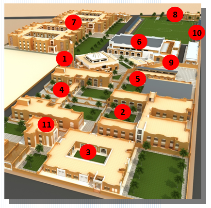 6. قاعة متعددة الأغراض (1000 طالب)(صالة طعام، مسرح، مطبخ)