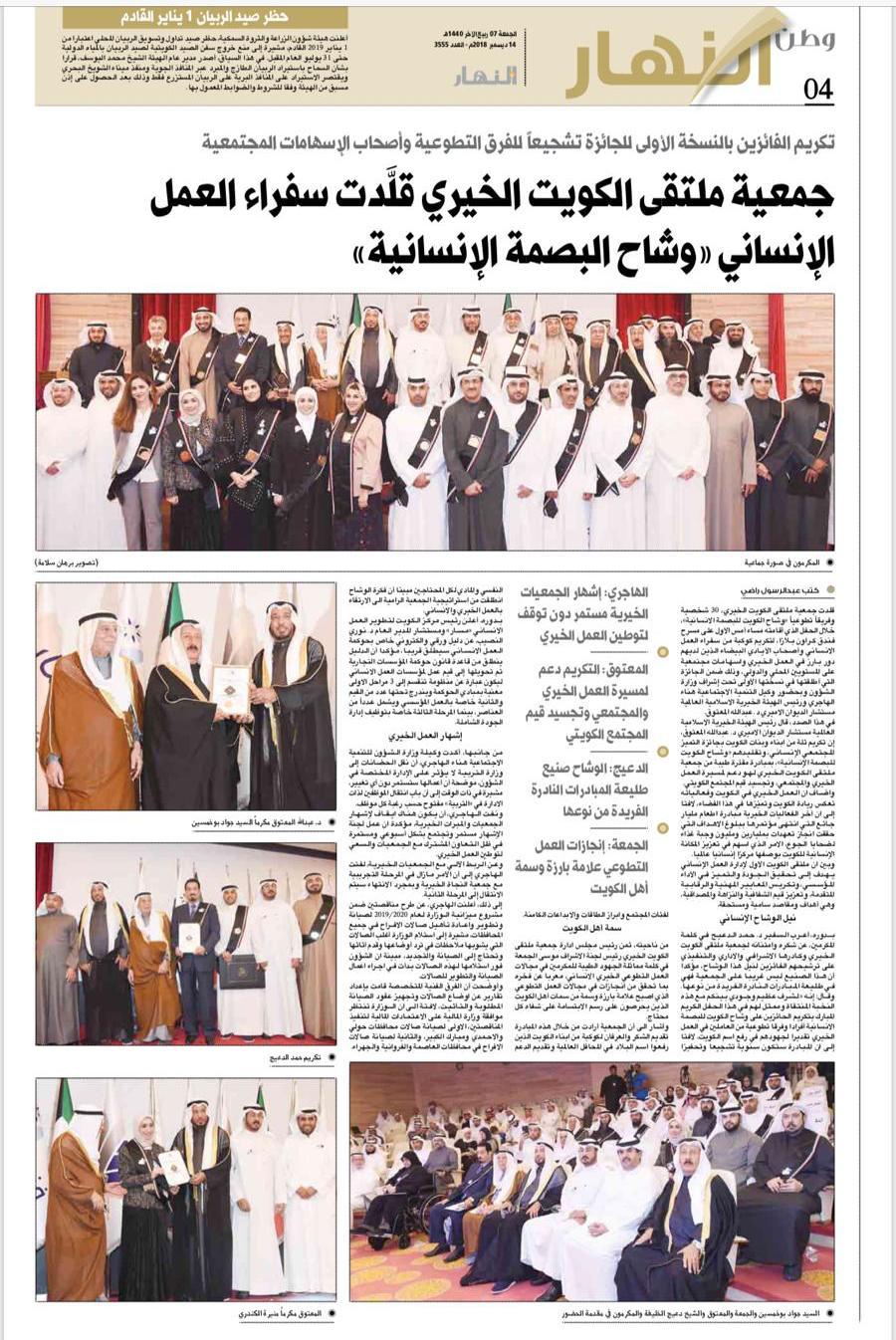 تكريم فريق مهندسي الخير التطوعي بملتقى الكويت الخيري وتقليد الفريق جائزة وشاح البصمة الانسانية